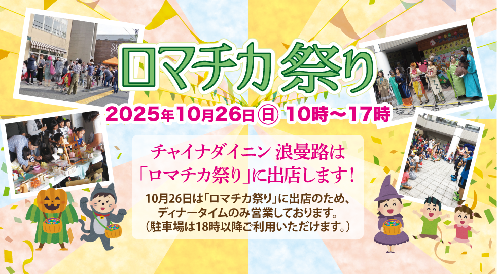 10/26は「ロマチカ祭り」に出店のため、ディナータイムのみの営業となります