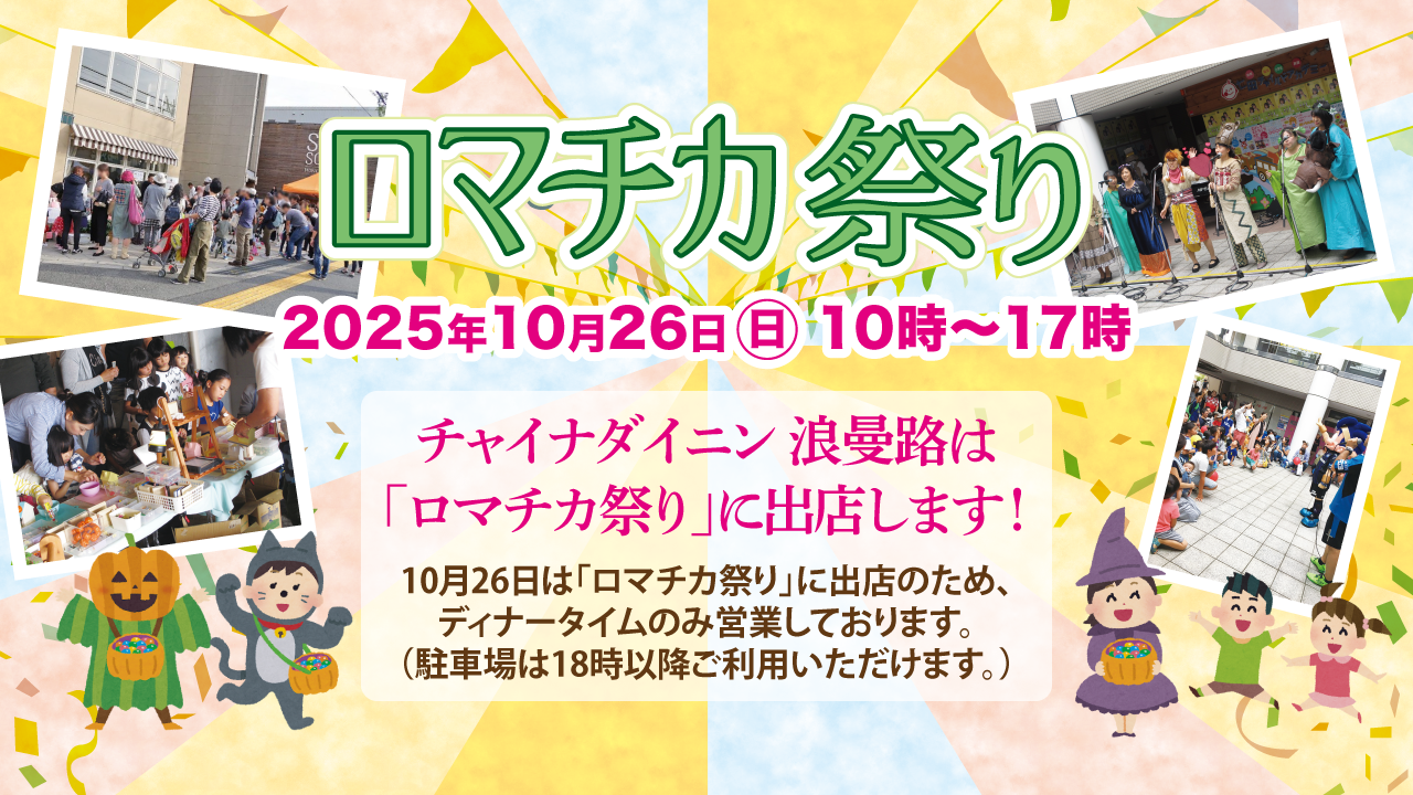 10/26は「ロマチカ祭り」に出店のため、ディナータイムのみの営業となります2025.10.09